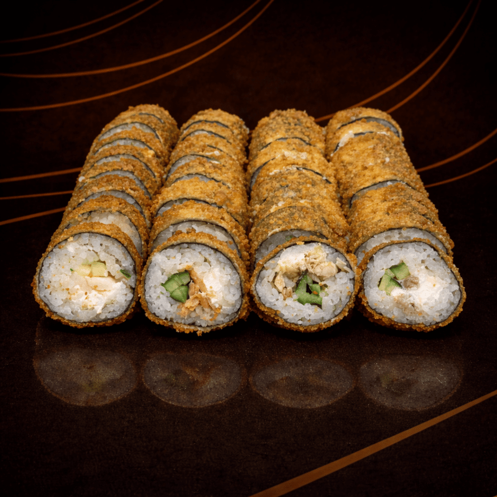 Темпура-роллы с деликатной золотистой корочкой и сочной начинкой. Хрустящая текстура подчёркивает мягкость ингредиентов и создаёт тёплый, выразительный вкус. Элегантная коллекция для ценителей темпуры.