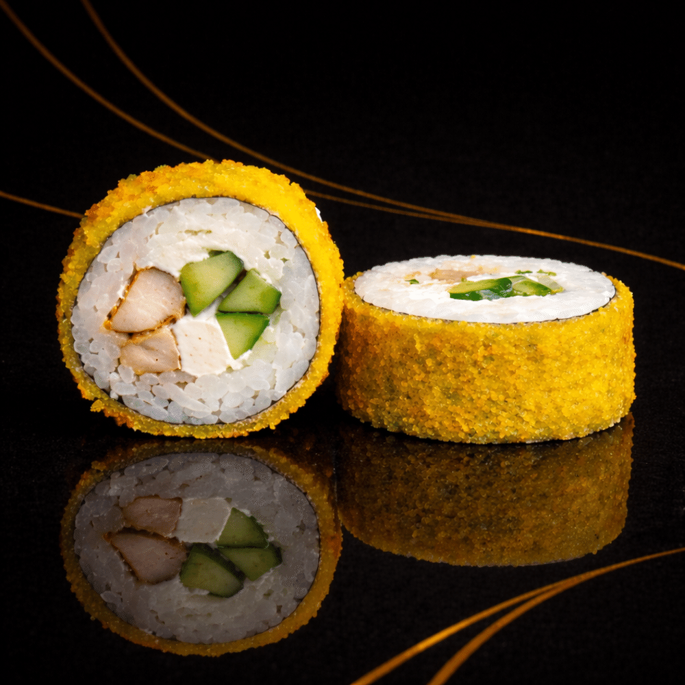 Рис, сливочный сыр, курица "Сибуки", огурец, темпура